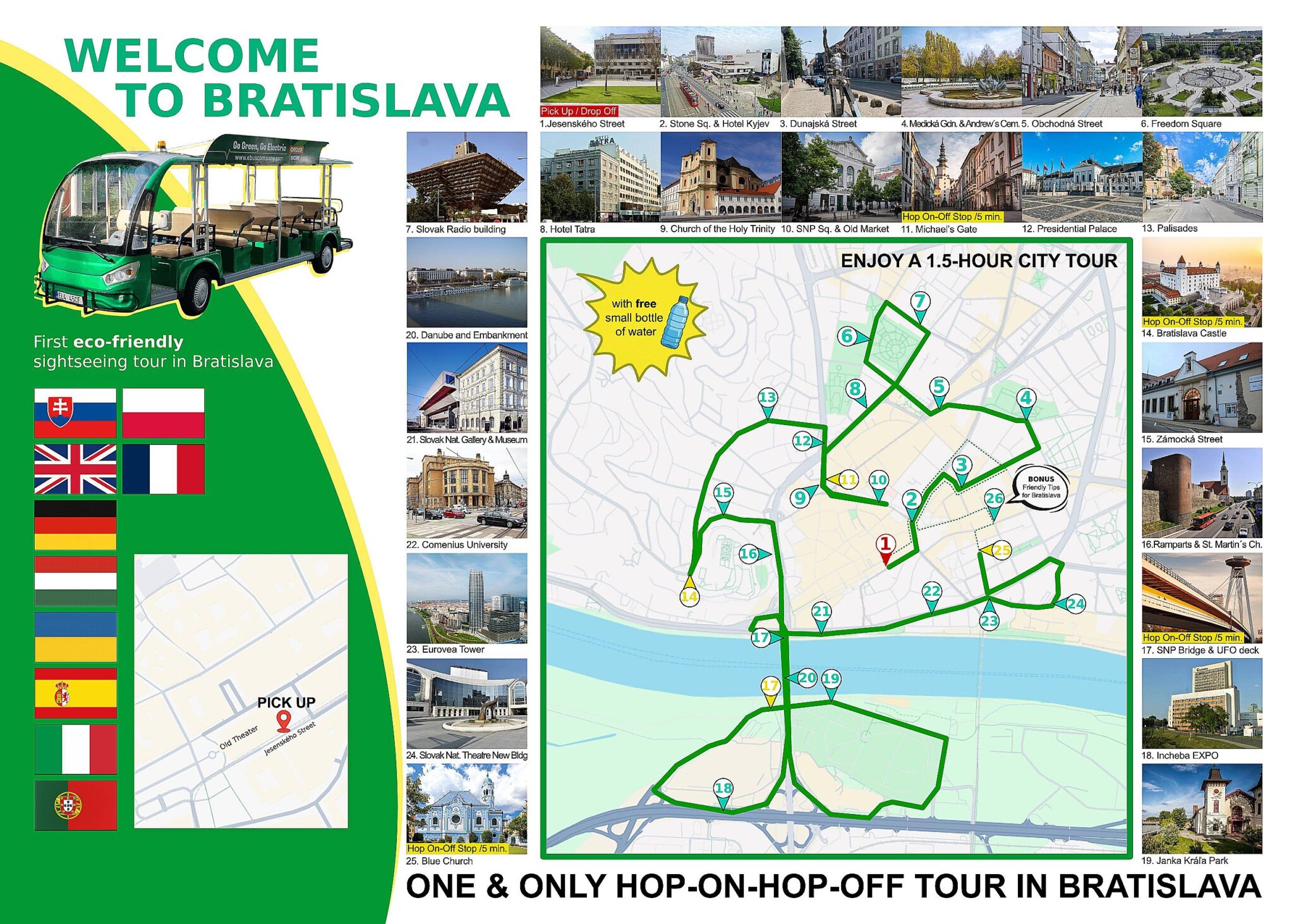 Ebuscompany s.r.o bietet eine bequeme und flexible Stadtbesichtigung in Bratislava im Hop-on/ Hop-off-Prinzip mit modernen, umweltfreundlichen Elektro-Bussen.